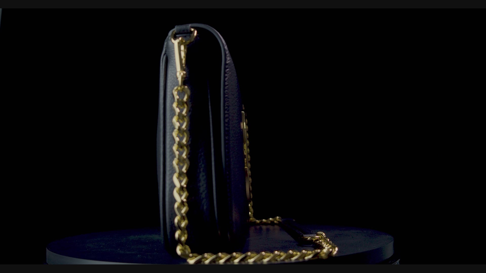 - Detachable yellow gold-toned chain with leather shoulder strap detail