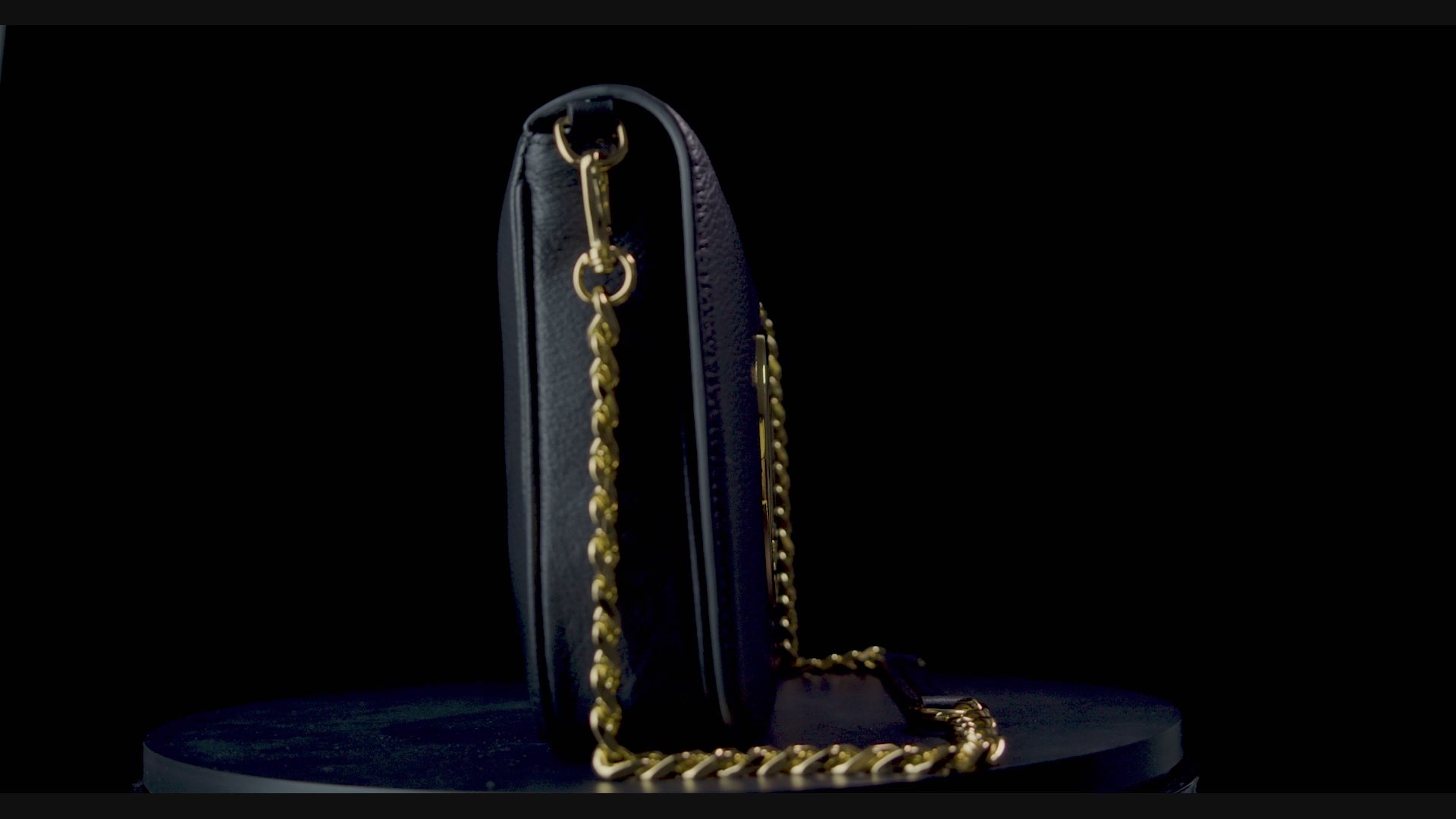- Detachable yellow gold-toned chain with leather shoulder strap detail